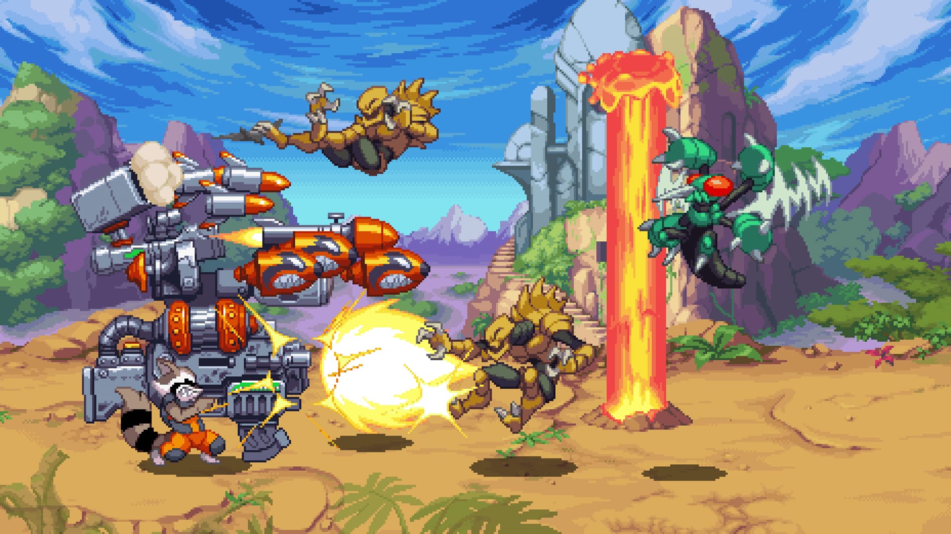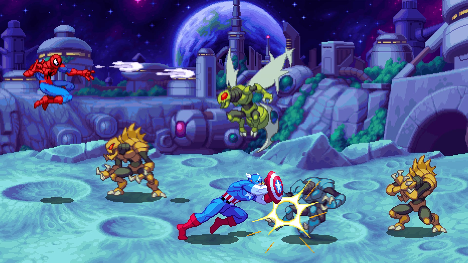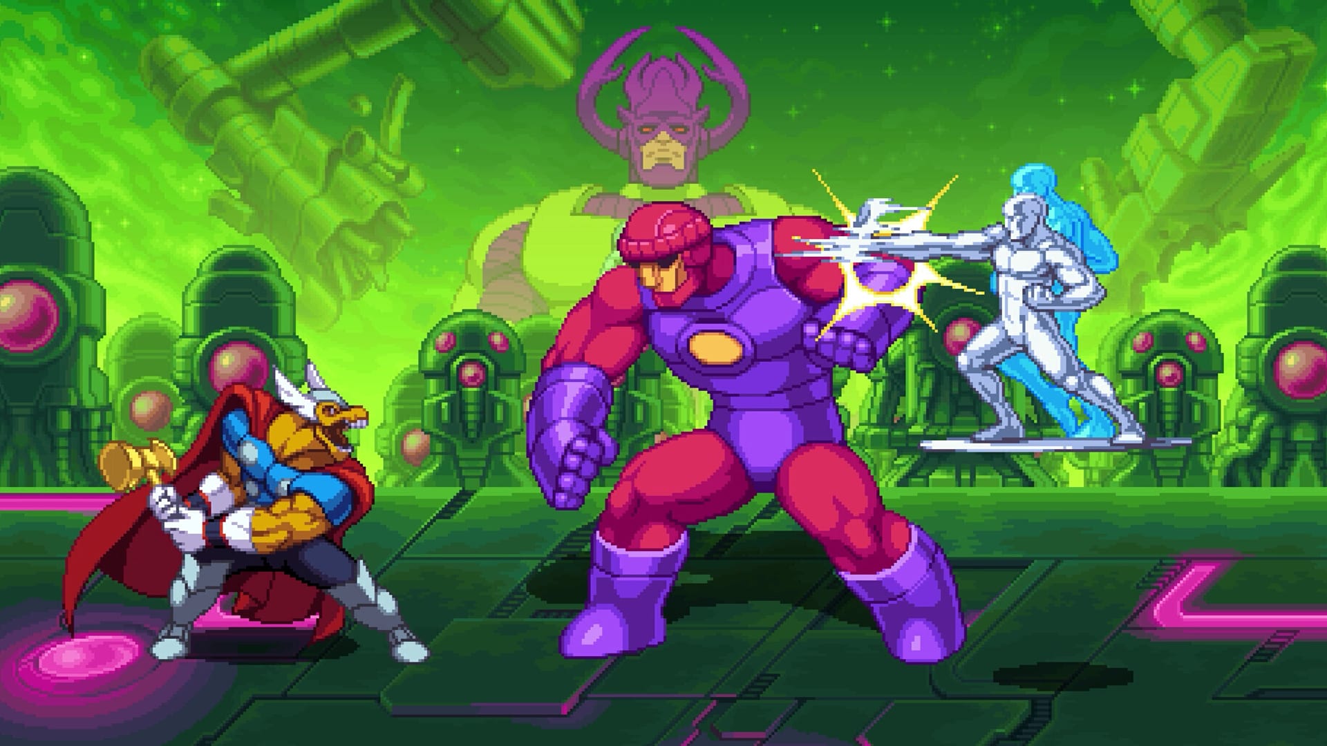 Modern fauxback beat-em-ups are known quantities at this point and Cosmic Invasion doesn’t push the genre into new territory. It has some hooks like being able to select two heroes at once and the Marvel vs. Capcom-inspired tag moves, but if you’ve played any recent brawler you should expect a familiar experience.